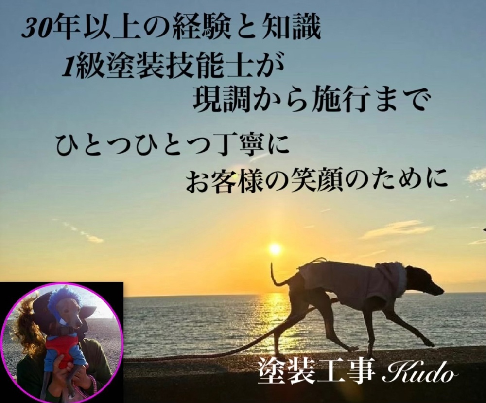 「家の壁が傷んできたかも…」「屋根が色あせてる」など、些細な事でも気になることがありましたらお気軽に何でもお問い合わせください。見積もりは無料です!ここで私の話を聞いて下さい‼️私が目の当たりに見てしまった。塗装業界の闇は、自社施工ではない2次下請けならまだしも3、4、5次下請けまで行ってしまい。かなりのマージンを抜かれてしまって本来のやるべき工程を抜いたりしている業者がいました。そこで、私は塗装工を17歳から始めた経験と知識を持ち2015年に独立し塗装屋「Kudo」を立ち上げました!しかし、職人しかしてなく信用と実績で今までお客様と繋がってた私ですが!今やSNS、ホームページがないとダメかぁー競争率の高い業種でもあり、予算をかければ立派なホームページ作成出来ますがあえて無料で挑戦しコツコツと地道に作成しました!そんな自分に住宅塗り替えをお任せ下さい‼️見積もり依頼お待ちしております。では、お会いしましょうね❗️